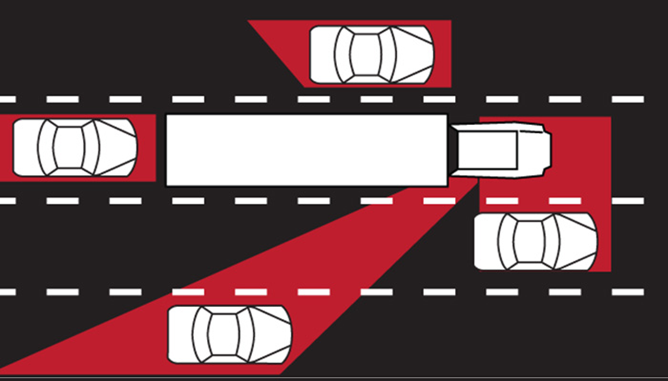بسیاری از تصادفاتی که برای ماشینهای سنگین اتفاق میافتد به علت عدم دید کافی راننده به نقاط کور است. تریلیها و کامیونهای سنگین به علت بزرگی و طول زیاد، دارای نقاط کور زیادی هستند. به همین دلیل آنها به درستی ماشینهای سواری یا حتی عابرین پیاده اطراف ماشین را به درستی مشاهده نمیکنند. نقاط کور در کامیون و کشنده در هنگام دور زدن یا دنده عقب رفتن افزایش مییابد و احتمال بهوقوع پیوستن حوادث افزایش مییابد.